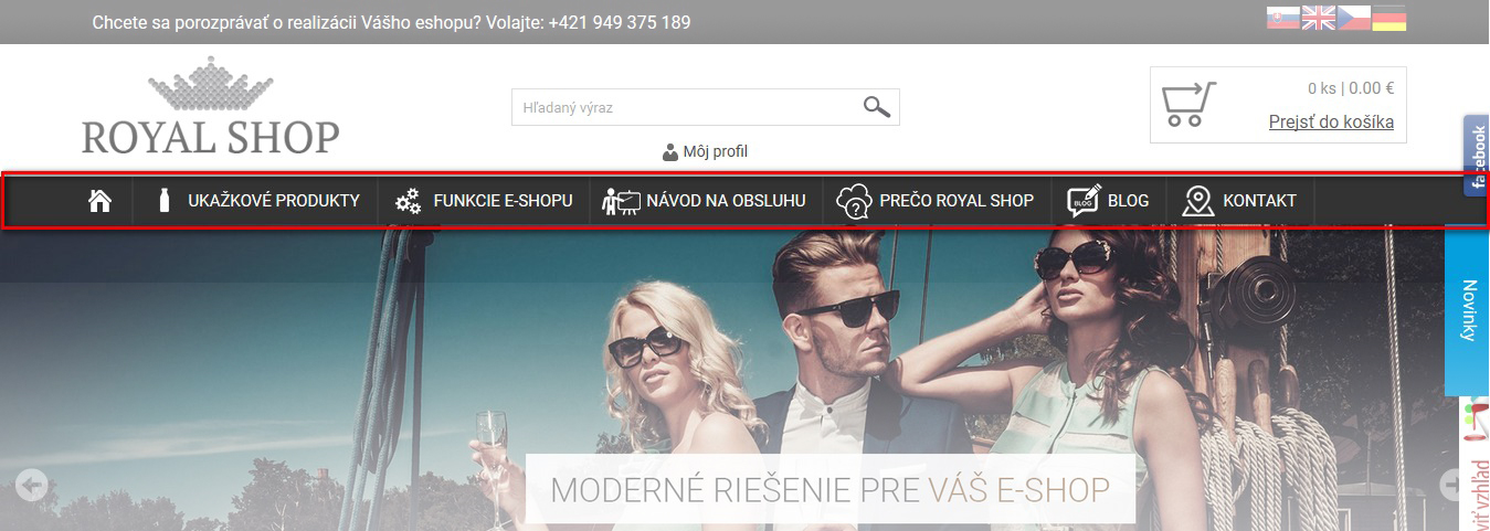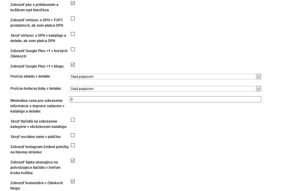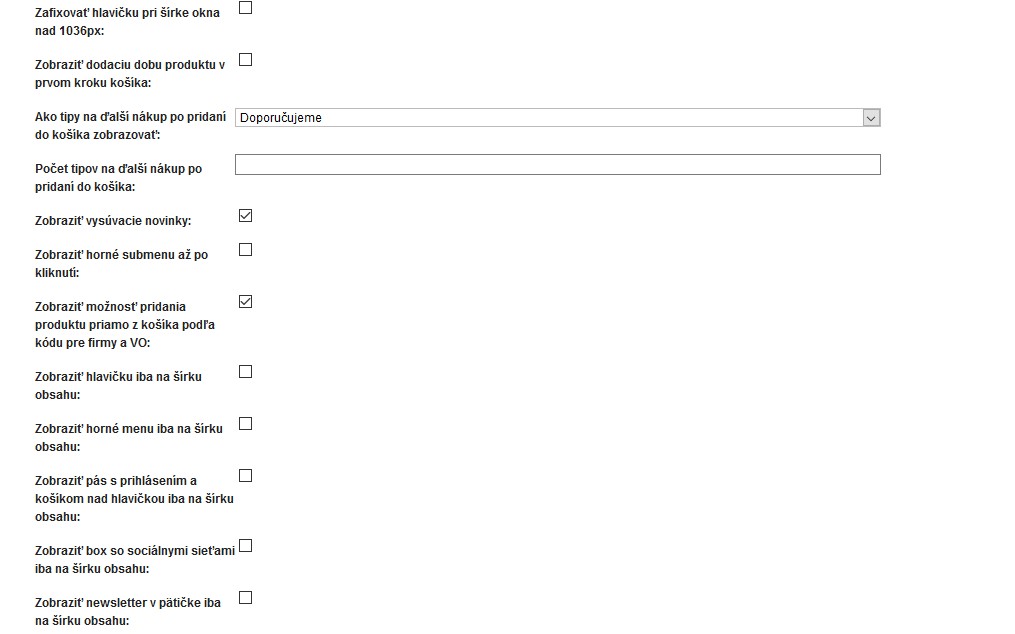 Máte možnosť zapnúť fixovanie hlavičky webu. Táto sa pri pohybe smerom dole zmenší a ostane v hornej časti okna prehliadača. Umožňuje to rýchly prístup napr. ku košíku, vyhľadávaniu či článkom.
