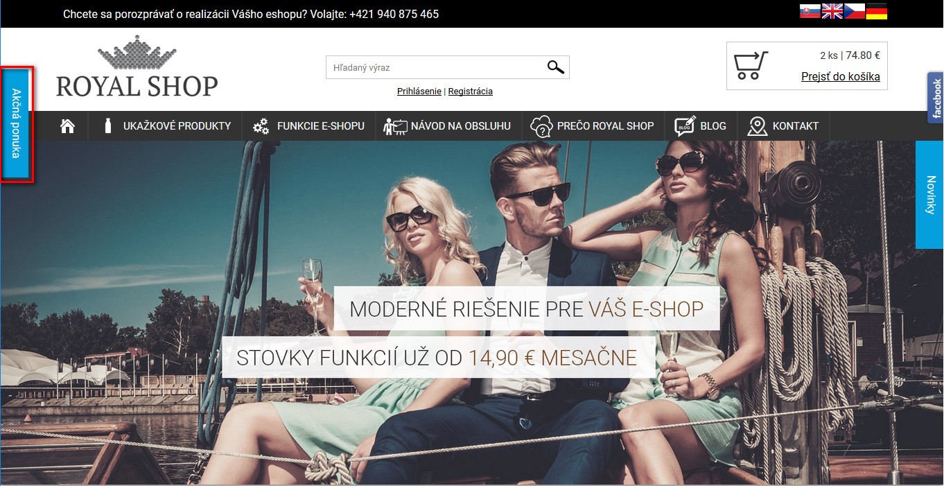 Slovenský zákazník veľmi rád nakupuje akciový tovar alebo využíva výpredaje na získanie lepšej ceny. Je tu aj skupina, ktorá si potrpí na novinkách. Každému produktu viete nastaviť „visačku“, kde pri prechádzaní katalógu každý jasne vidí, že sa jedná o zaujímavý tovar. Pre zvýšenie pohodlia si môžete nastaviť aj dátum, kedy sa toto označenie vypne.