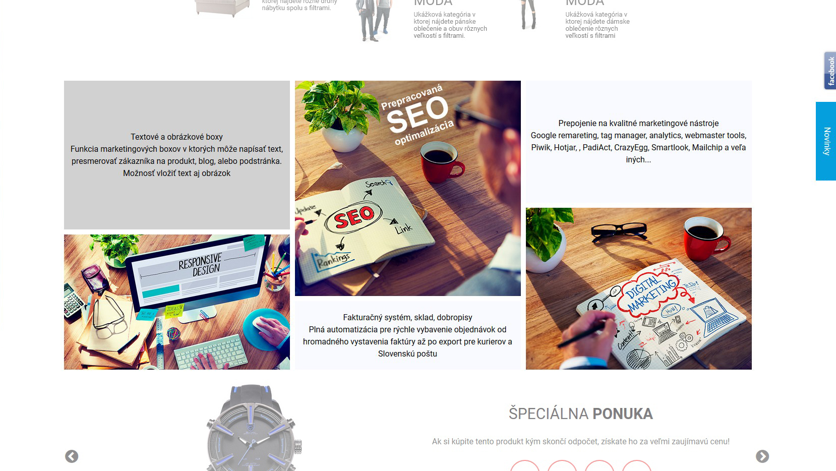 Sú to boxy, do ktorých môžete umiestniť obrázky alebo text a presmerovať ich na produkty alebo akúkoľvek inú podstránku.